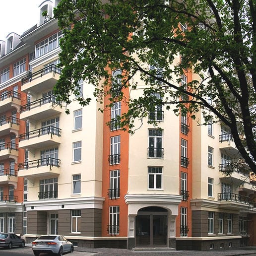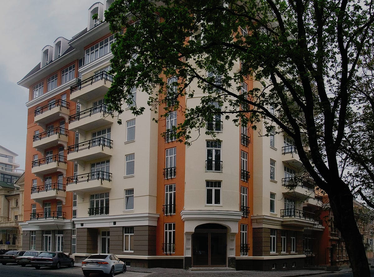 Житловий комплекс «Аркада де люкс» – це успішна адаптація суперсучасних проектів до існуючого класичного архітектурного середовища. На першому поверсі 8-поверхового житлового будинку «Аркада де люкс» розташований просторий хол із зимовим садом та входами в безшумні пасажирські та вантажні ліфти, офісом та службою охорони.
